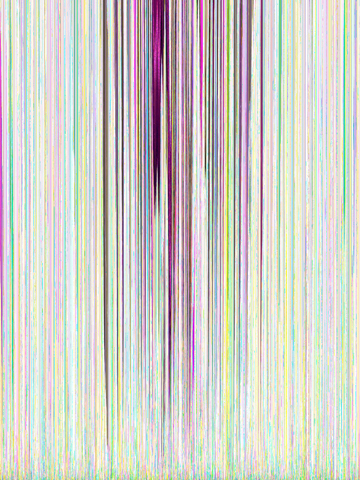 Here, Stan Douglas presents image data of photographs, a visualisation of computer files. These lines of colour don’t portray the world but depict information, strangely reminiscent of abstract painting (Gerhard Richter style). Albeit “true” copies of reality, the human eye won’t recognize them as such. They are written in a language that belongs to machines - even the geekiest photographer won’t be able to imagine an image on the base of these patterns -, and the files being damaged, they can never be translated. Is the information they hold “true” or “false”, “1” or “0”?