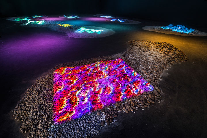 Pipilotta Rist pushed the lava lamp to the extreme with simple and colourful images projected to “beaches” - sand and pebbles that create an underwater effect. Looks great, really decorative. Not in a bad way. Coloured sand in a glass also looks similar.