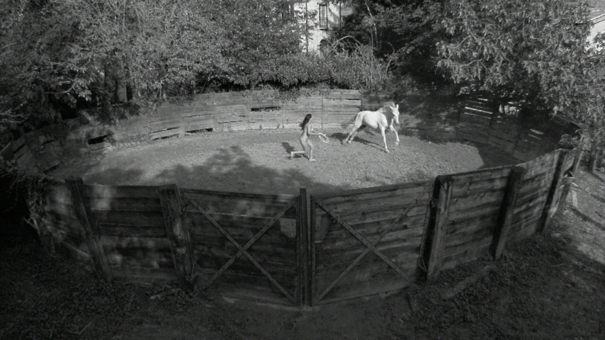 A work easier to appreciate without much meta-knowledge shows a naked woman chasing a horse to and fro through a paddock (only black and white images though). Now horses are said to be not the most intelligent of animals (or to put it blankly: rather stupid beings). This exemplar furthermore appears to be a gelding - feel free to approach the screen for verification. This is progress: from Middle Age's phallic unicorns to circus dressage; Adrian Paci gives no hints for decryption of his danse macabre.