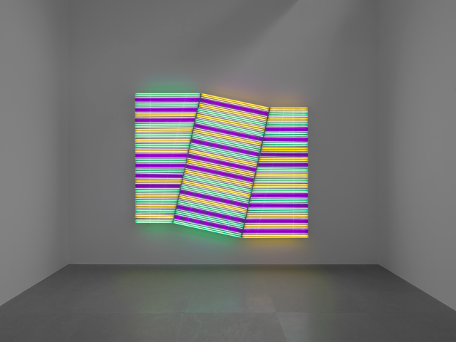 In art history it is common to find the same idea carried out by countless artists. The genre stays the same, the outer appearance changes: religious or historical scenes, still lifes, portraits of the same person executed by different painters... Now what happens if the outer appearance stays the same, and the technique changes? To inquire into this, Lavier took existing artworks to another medium. Frank Stella's abstractions reproduced in neon tubes and in a Gobelin tapestry are no longer the original works, the same is true for a mosaic of a pointilist painting by Signac, but are they Lavier's creations? And the Rothko film already mentioned above: the film of a painting simulates its existence or it reception, or neither of these? What if Mark Rothko had presented a film in first place? Would it be a piece of video art or a filmed painting, and Lavier's work, what is this - a documentary? What about authorship and originality in these cases?