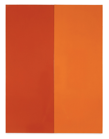 There is still another field of thought Lavier is interested in: semiotics, discrepancies between the signifier and the signified. A canvas half painted with the colour of one company, half with that of another - both carry the same name, but the result shows two distinctive colour fields.