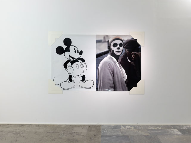 Photo wallpapers are more interesting: A pledge of allegiance in a black elementary school somewhere in the South, 1900, bizarrely anticipating a Hitler salute. A collage with Mickey Mouse and a Voodoo priest, titled Mickey Scorpio (but that film was only about star constellations, right?). Never noticed the resemblance, but it all makes sense now. (?) American “Culture”/society meets a hidden subculture. A plastic photo, or: "vacuum-formed plastic relief", of Ex-Slave Gordon with whip marks on his back, 1863. The Soledad bothers storming a courthouse (never heard the story before ->Black Panthers). The word "Slaver" in Slayer band typo, not entirely unreasonable, there might exist a certain intersection between people listening to metal and people cherishing the old times.